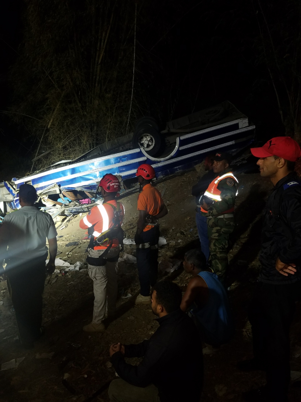 La Vega, RD. – El Servicio Nacional de Salud (SNS) informa que cinco hospitales de la región Norte o Cibao recibieron 53 personas víctimas del accidente de tránsito ocurrido la noche del domingo cuando un autobús, que trasladaba un equipo de football, se precipitó por un puente en la carretera Jarabacoa- La Vega.