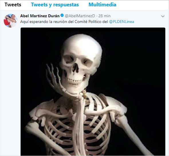 esqueleto, acompañada del siguiente texto: “Aquí esperando la reunión del Comité Político del