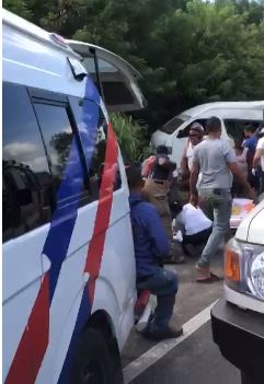 De acuerdo con transeúntes el hecho ocurrió cuando una guagua de pasajeros estaba parada y fue impactada por una patana de carga con doble remorque.