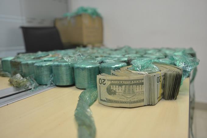 El dinero fue empacado en 96 rollos de billetes de distintas denominaciones, que fueron introducidos en el interior de 11 ejes cardan, parte de la mercancía manifestada como “hierros”, dispuesta esta vez en dos tanques, transportados en el contenedor con la numeración CLHU-901929-3.