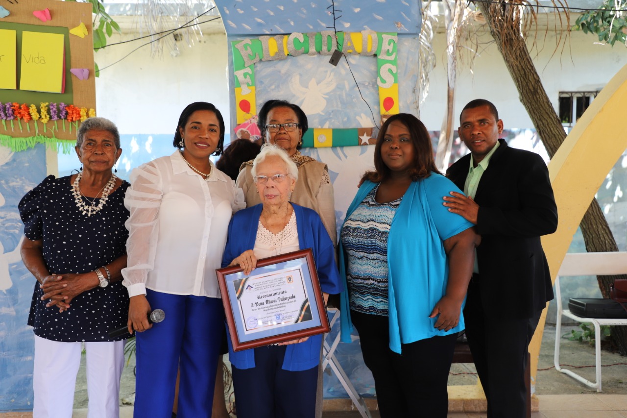 Del mismo modo fue sorprendida Doña María Valenzuela con un reconocimiento realizado por la regidora Ana Rita presidenta de la comisión de género del Ayuntamiento Municipal y la Licda. Doris Romero presidenta de la Fundación CADIFA, destacando los años de trabajo y dedicación que tiene al frente de esta institución. Entre los presentes estuvieron el General Licdo. Orison Olivence Minaya director regional oeste de la Policía Nacional, los periodistas Manuel Espinosa Rosario y Fernando Romero, los empresario Alberto de Oleo, Isidro Sosa, los miembros del club de ciclismo Los Aventureros, los Rodamontes MTB San Juan los cuales llevaron sus donaciones para la actividad, Nápoles y María Casso entre otras personalidades, Doña María Antonia Valenzuela como encargada del Hogar o Asilo de Ancianos dio las gracias a todos los presentes. El evento estuvo bajo la conducción de la comunicadora Laura Meran.