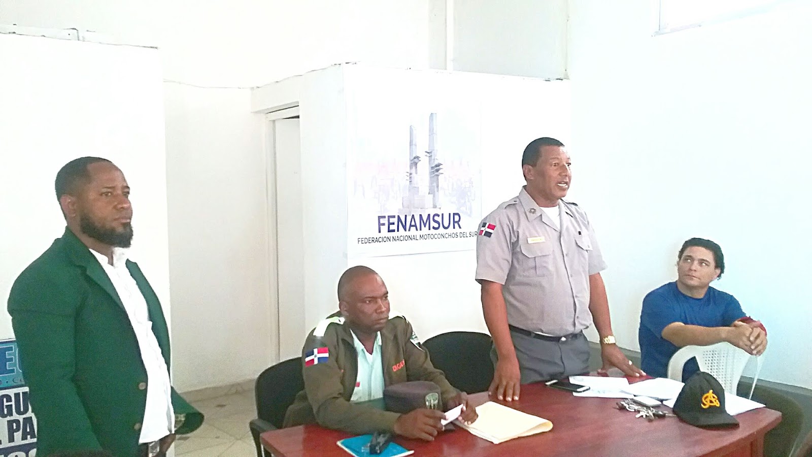 La entidad es representada por el empresario y presidente de FENAMSUR Manuel Sánchez, quién encabezó el importante encuentro con motoconchos del referido municipio, en conjunto con las autoridades de la Comandancia policial de Las Matas representadas por el Coronel Peralta y de la Dirección General de Seguridad de Transito y Transporte Terrestre DIGESET ,dirigida por el segundo teniente Lorenzo Cabrera Batista, así como de Robinson Aquino, quién es el secretario de la federación filial Las Matas.