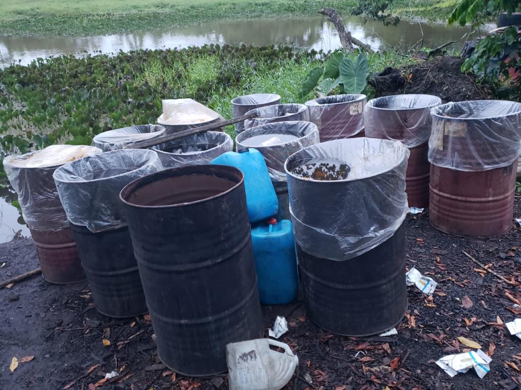 También se confiscaron 44 tanques de clerén, garrafones plásticos, levadura, coladores y un camión marca Daihatsu que presuntamente utilizaban para movilizar la bebida alcohólica adulterada desde la comunidad en la laguna de Los Luna, sector San Juan de Buena Vista, distrito municipal de Chirino, provincia Monte Plata.