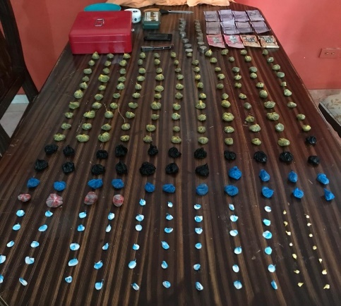 Durante las intervenciones se incautó una mata de marihuana, ocho pastillas de éxtasis; 2, 009.9 gramos de cocaína; 675.7 gramos de crack; 12.10 gramos de heroína y 12.63 libras de marihuana, con un peso aproximado de 5,728.8 gramos, para un total de drogas decomisadas de 8,426.5 gramos.