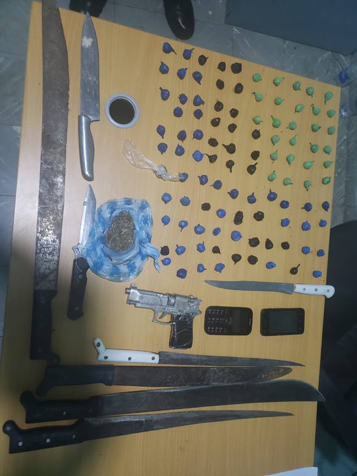 127.2 gramos, 8 armas blancas una pistola de cal amina y 2 teléfonos celulares.