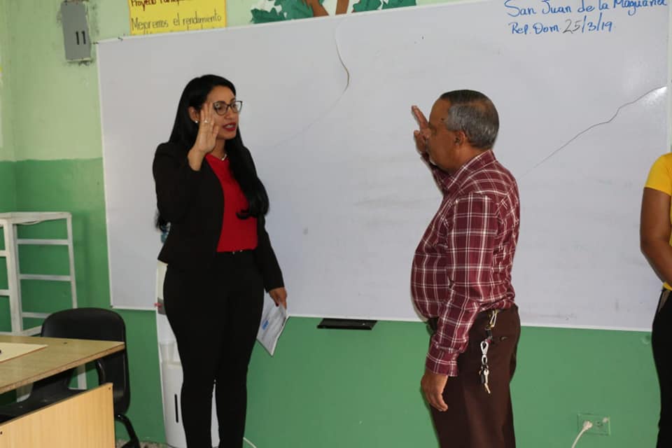 José Gullón Estrella, la directora regional de educación,  Doris Veloz Suero, puso en posesión a tres