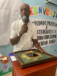 También fue reconocido el maestro Vítor Manuel Pérez Bautista por su trayectoria de 30 años en beneficio de los estudiantes, los docentes y toda la comunidad educativa y depo deportiva.