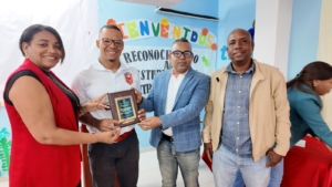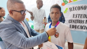 San Juan.- El director del Distrito Educativo 02-06 San Juan Oeste, profesor Ángel Mateo, encabezó este viernes la entrega de reconocimientos a estudiantes y centros educativo por su destacada participación en los pasados Juegos Deportivos Nacionales Escolares San Francisco 2025.