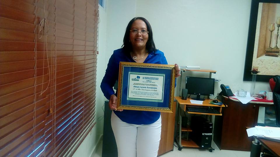 SAN JUAN DE LA mAGUANA.– La  escuela  Dominicana de Comunicación oral  edoco   entrego  un reconocimiento a la Maestra  Elvira  Corporán de los  Santos directora de la Universidad  Autónoma de Santo  Domingo  Centro San Juan de la Maguana por  sus aportes a la educación  y trayectoria.