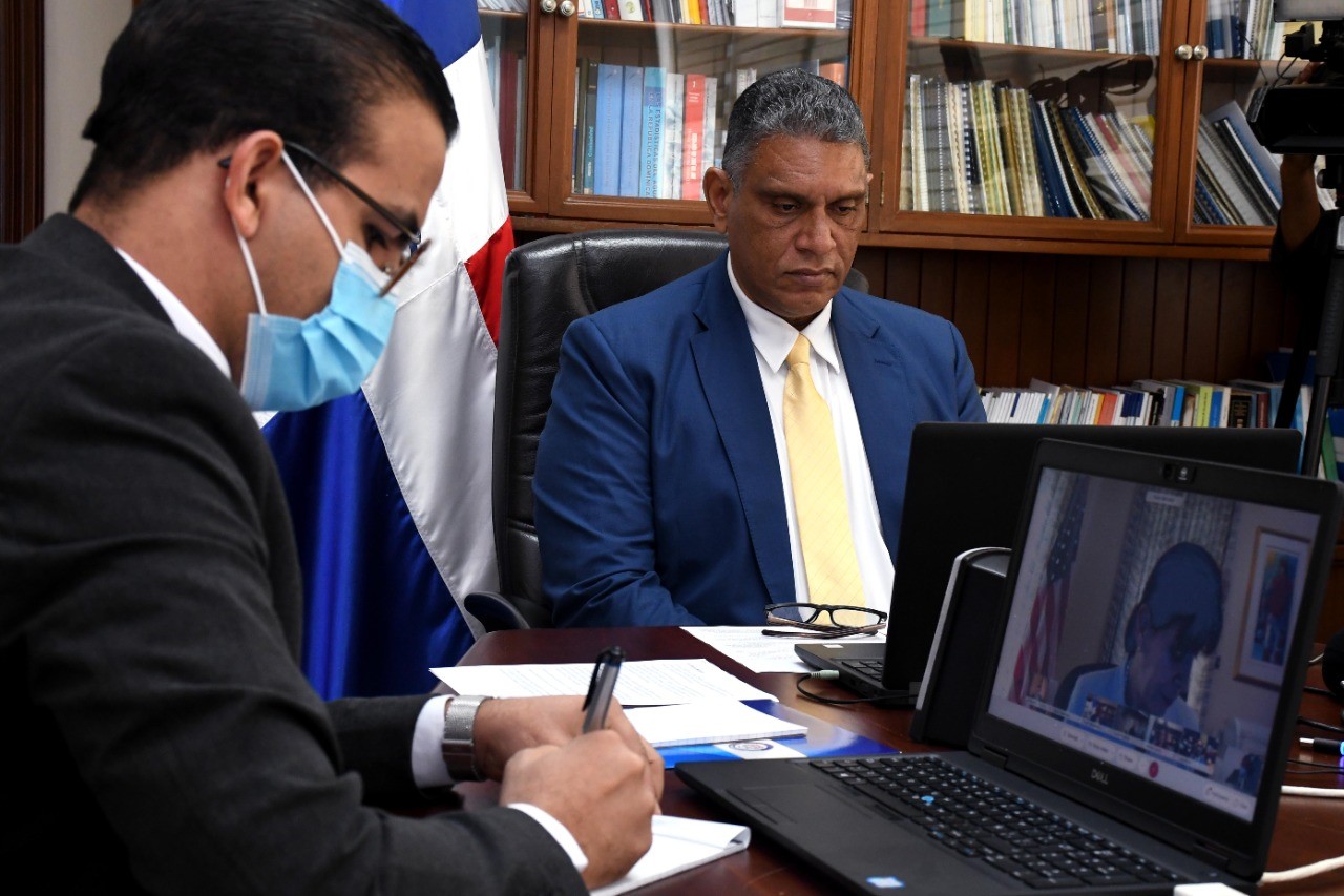 En la reunión virtual con la Embajadora Robin S. Bernstein, el ministro Vásquez Martínez estuvo acompañado del director del Gabinete Ministerial, Víctor Benavides, y de Elvis Lima, director de Comunicaciones.