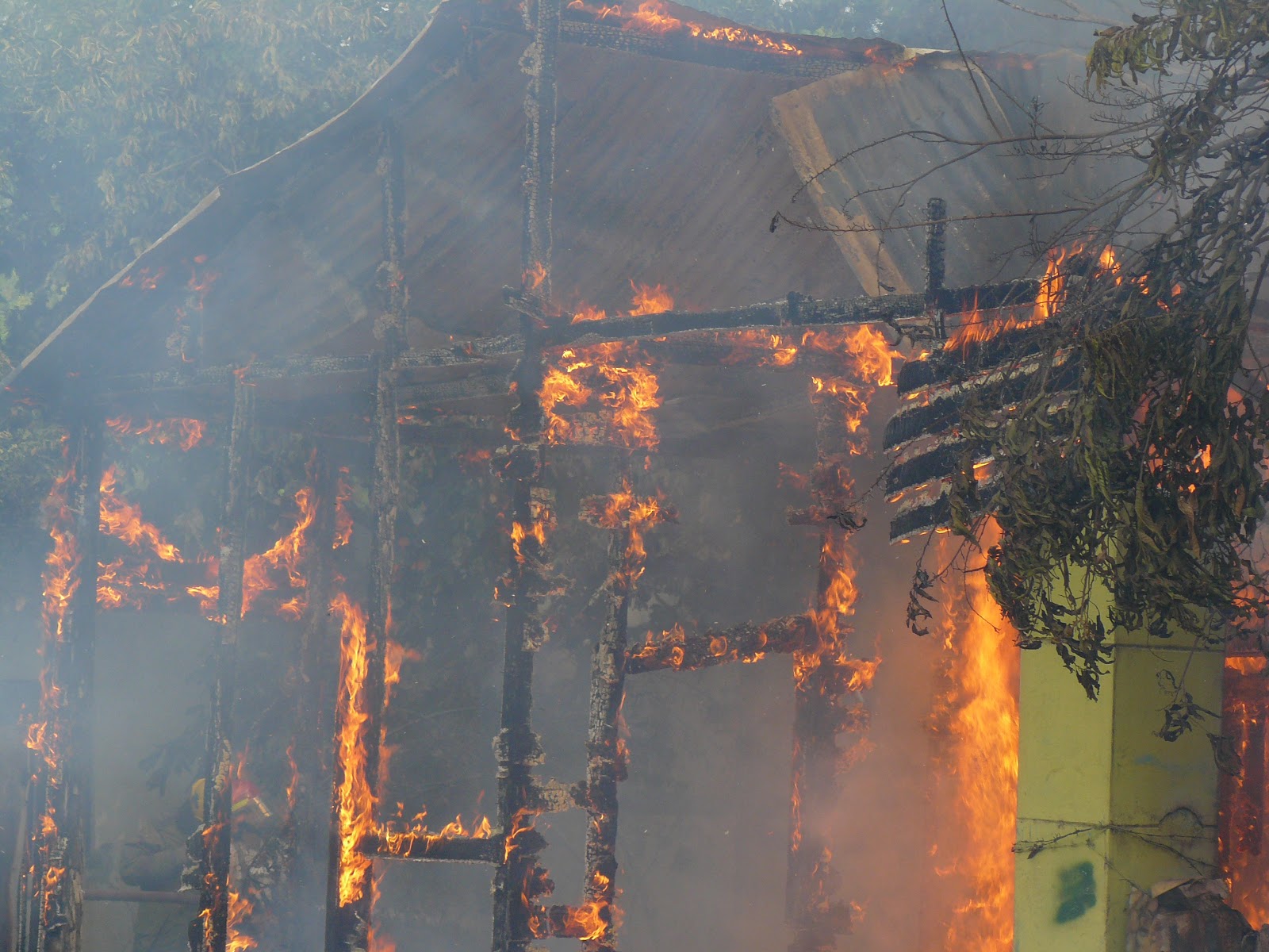 Pese al gran esfuerzo de los miembros del cuerpo de bomberos el incendio consumio 100% de la vivienda lo cual hasta el momento se desconoce el motivo por el cual inicio el incendio.