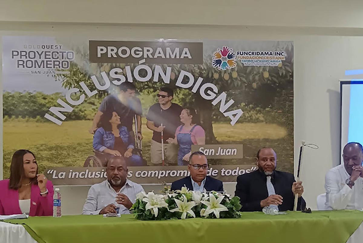 San Juan.- La empresa minera GoldQuest y la Fundación cristiana Dando la Mano Amiga, realizaron el lanzamiento del programa conjunto Inclusión Digna, dirigido básicamente a personas con discapacidad.