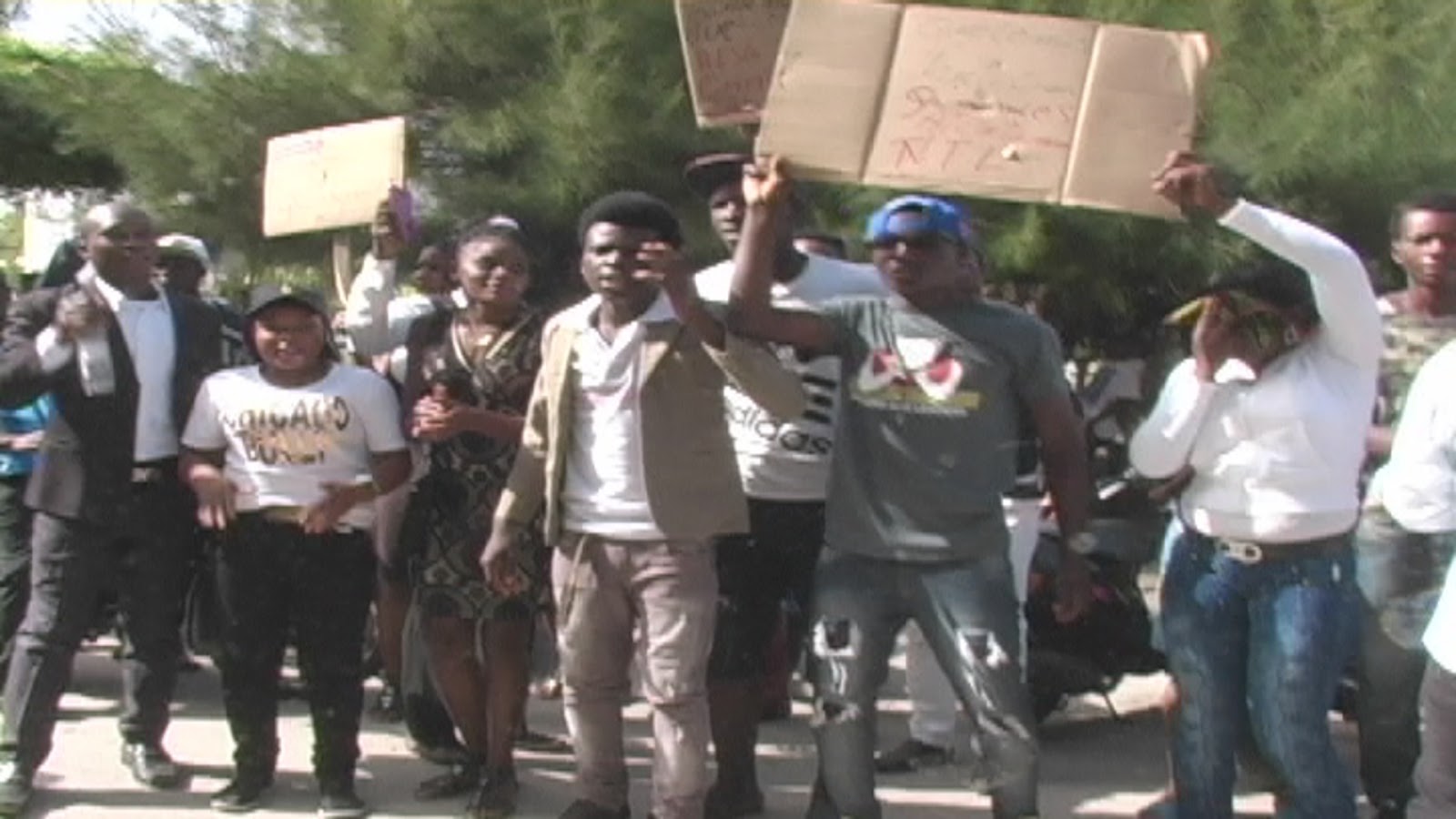 protesto frente al palacio de justicia de San Juan de la Maguana, en demanda de