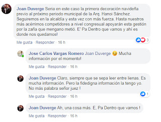 Lo que había dicho Joan Duverge asistente de la gallinita seria lo siguente: "Seria en este caso la primera decoración navideña previo al próximo periodo municipal de la Arq. Hanoi Sánchez. Seguiremos en la alcaldía y esta vez con más fuerza. Hasta nuestros más acérrimos competidores a nivel congresual apoyarán esta gestión por la zaña que mengano metió. E' Pa Dentro que vamos y ahí es donde nos quedamos!"