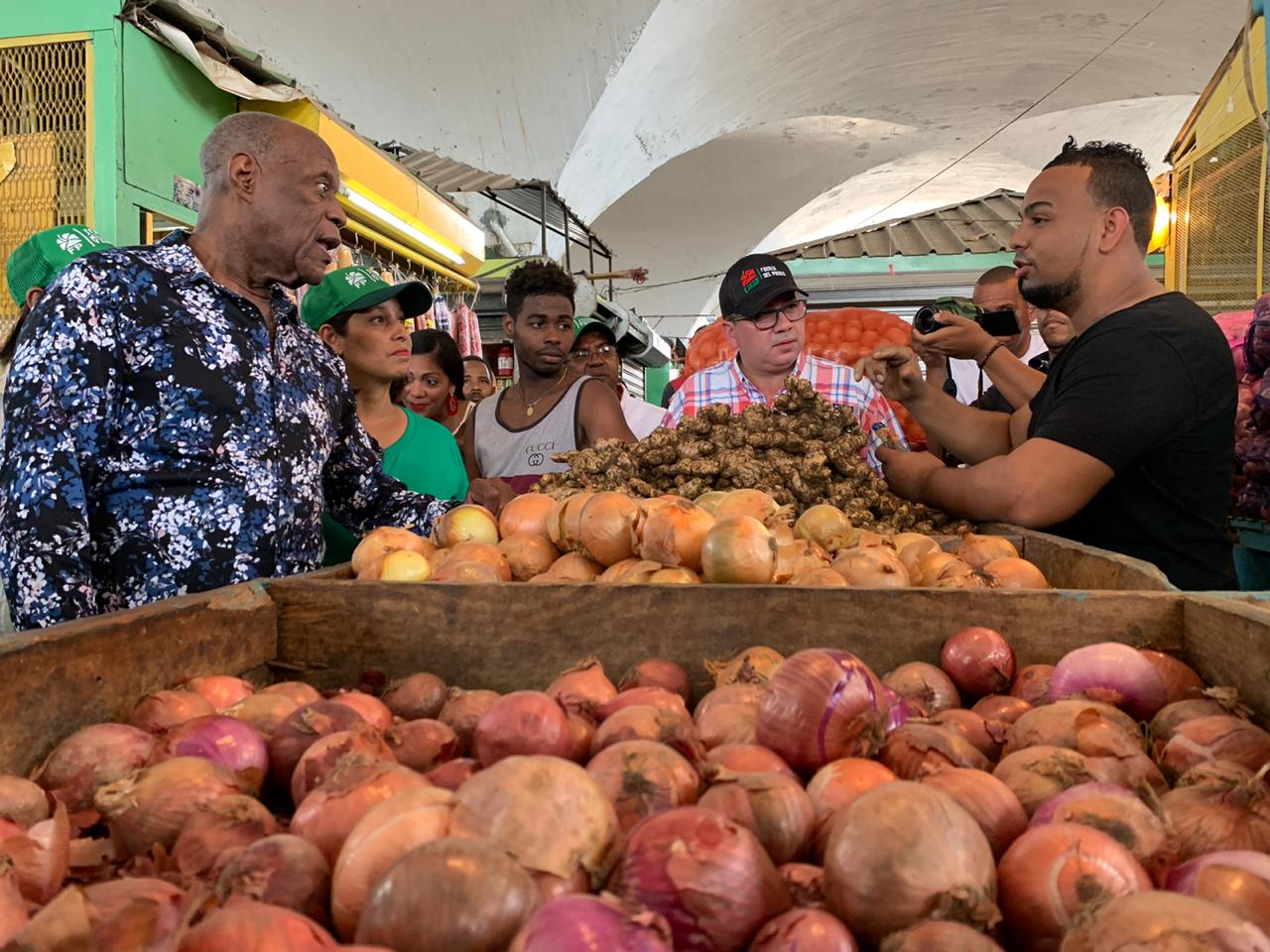 Santo Domingo, RD.- El candidato a la Alcadía del Distrito Nacional, por el Partido Fuerza del Pueblo, Johnnny Ventura, visitó a los comerciantes del mercado nuevo de la Duarte con quienes compartió su propuesta de gobierno municipal en el D.N.