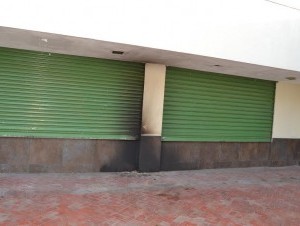 Según se pudo observar, una de las bombas de las denominadas molotov, ahumó la parte de la puerta enrollable de la edificación y la otra, quedo incrustada en un área del segundo nivel.