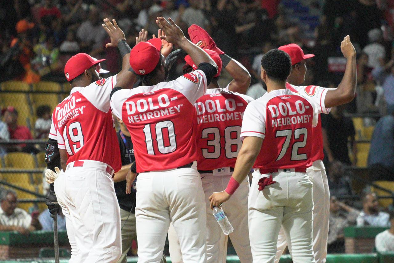 Por los escarlatas, Lake bateó de 5-1, con triple, dos empujadas y una anotada; Navarro, de 4-1, con cuadrangular, una producida y una anotada; González, de 4-2, con doble, anotada y base por bolas, y Hernández, de 4-2, con una impulsada. Por los verdes, Almonte se fue de 2-1, con doble y dos remolcadas, y Peña, de 1-1, con cuadrangular, una empujada y una anotada.