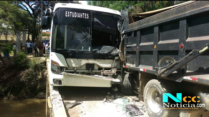 La colisión entre los vehículos pesados se produjo en el paso a desnivel de la comunidad  Los Arrollos, sección Caña segura, y según supo este medio NCC NOTICIA.COM ,el autobús  transportaba profesores que asistirían a cumplir a los últimos rezos de un profesor conocido como Cesáreo Ramón.