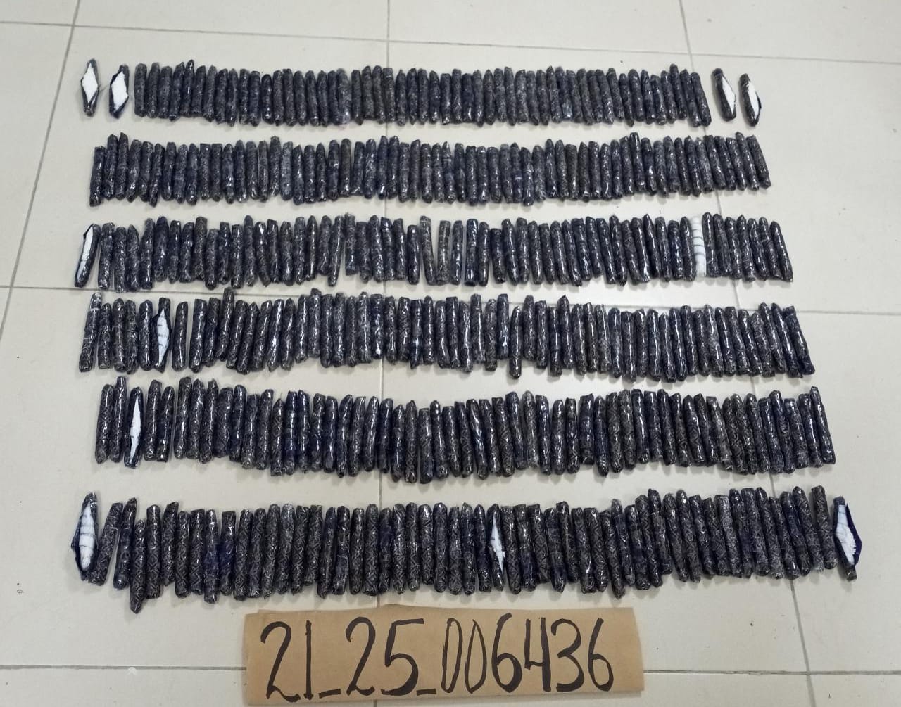 "Los agentes de la DNCD tras una ardua labor de inspección, detectaron que los tabacos tenian dentro envolturas forradas con papel carbón, para evitar que los rayos X descubrieran que estaban rellenos de la sustancia" señala el comunicado de prensa.