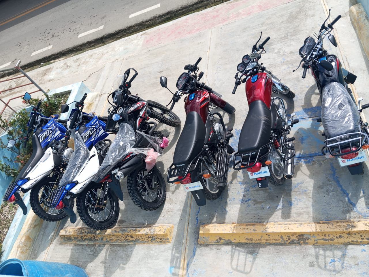 Durante la inspección del vehículo, los agentes ocuparon seis motocicletas reportadas como robadas, entre ellas tres marca Haojue, dos Tauro y una Loncin, todas sin documentación legal. Las investigaciones preliminares establecen que las motocicletas fueron sustraídas de la agencia Moto Centro LM, ubicada en La Romana.