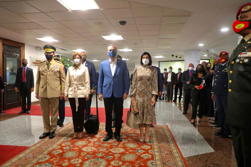 Al llegar  a la terminal aérea, acompañado de la primera dama, Raquel Arbaje fueron recibidos por la vicepresidenta, Raquel Peña, el ministro Administrativo de la Presidencia, José Ignacio Paliza y miembros de la seguridad del AILA.  en la Sala Presidencial del Salón de Embajadores.