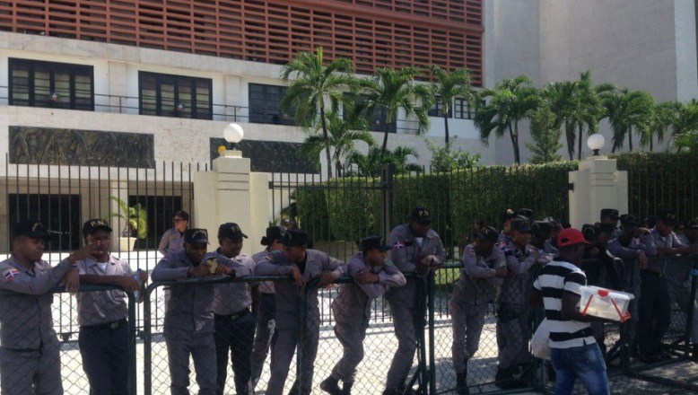 SANTO DOMINGO.– Vallas de seguridad perimetral y decenas de agentes de la Policía Nacional se encuentran apostados en los alrededores del Congreso Nacional, por presuntas protestas que podrían escenificar diversos sectores en el transcurso del día, ante la posible escogencia de los nuevo miembros de la Junta Central Electoral (JCE) y el conocimiento al proyecto de Ley de Presupuesto General del Estado para el año 2017.