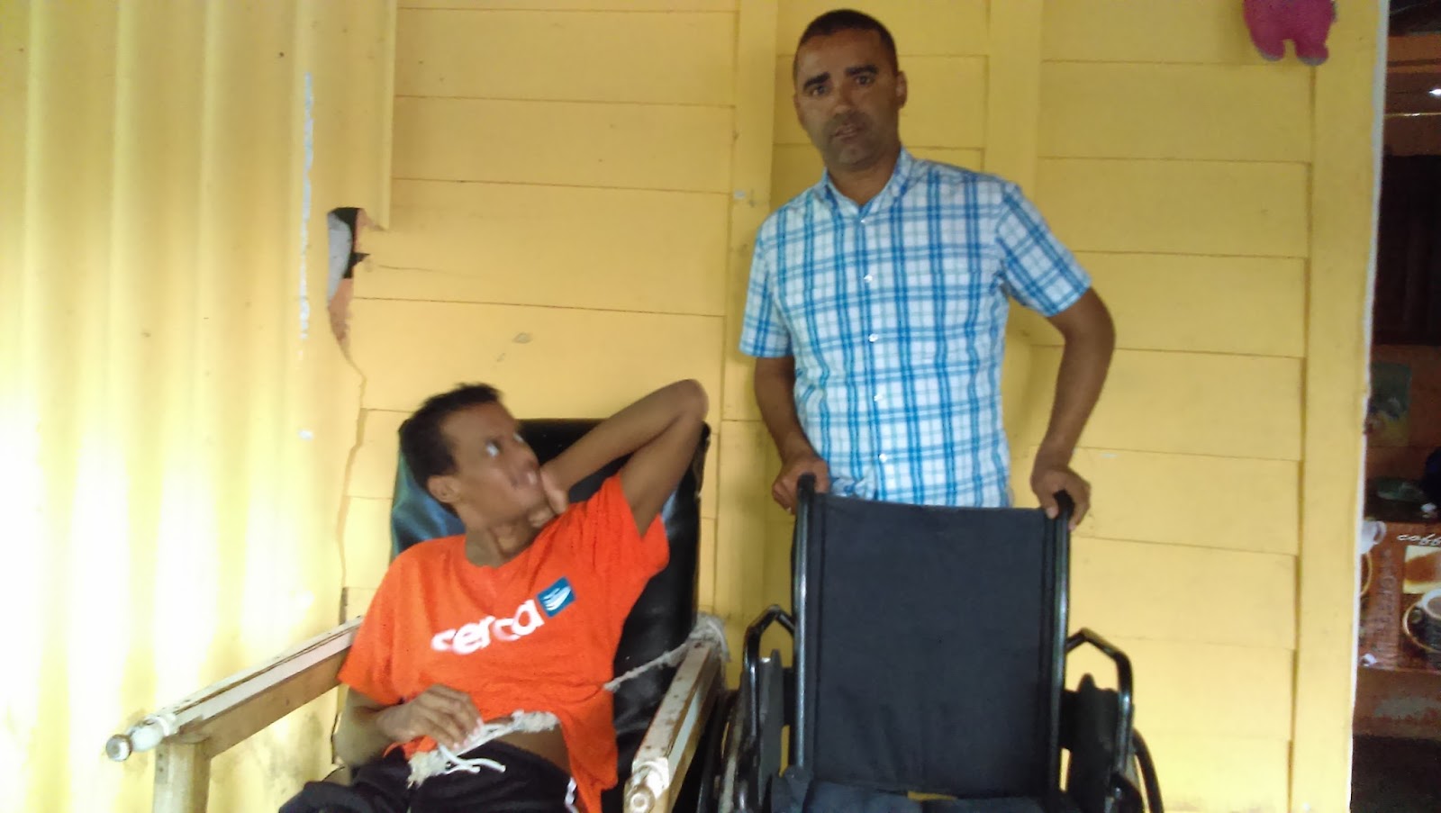 Franklin cruz se desplazó la tarde de este lunes, hasta la comunidad de punta caña, a entregar una silla de ruedas que le había solicitado un comunitario hace diez días, para el joven Luis Rubelis Félix de 23 años el cual padece de epilepsia desde tres meses de nacido.