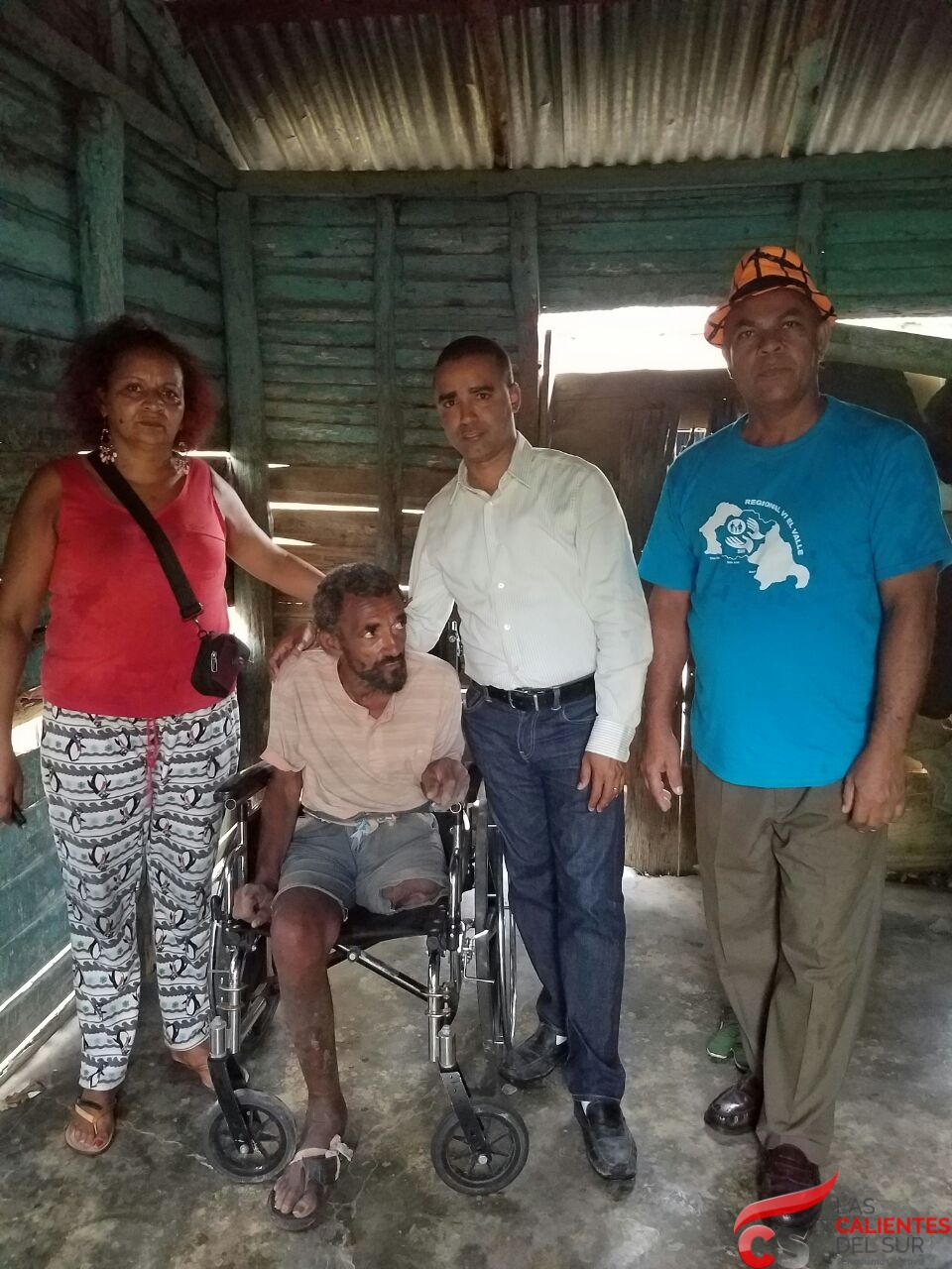 SAN JUAN DE LA MAGUANA.- El Regidor por el Partido de la Liberación Dominicana (PLD), en el Municipio de San Juan de la Maguana, licenciado Franklin Cruz, hizo entrega de una silla de ruedas al popular Peo con Yuca, quien luego de que le fuera amputada una pierna, no tenía como trasladarse de un lugar a otro.