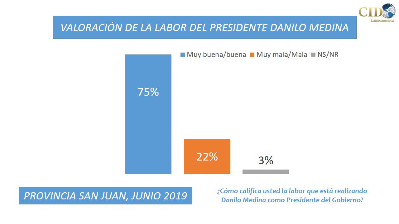 San Juan, RD.- Un gran porcentaje de la población Sanjuanera valora como muy buena o buena la gestión de gobierno que viene realizando el presidente Danilo Medina, según los datos de una encuesta publicada este viernes por el Ministro Administrativo de la Presidencia, José Ramón Peralta, en su cuenta de twitter.