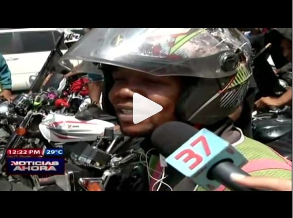Se trata de uno de varios motoconchistas que integran la manifestación contra la posible propuesta que no ha sido sometida en el Congreso, pero cuyos rumores se mantiene activos ante el rechazo de los legisladores leales al expresidente Leonel Fernández.