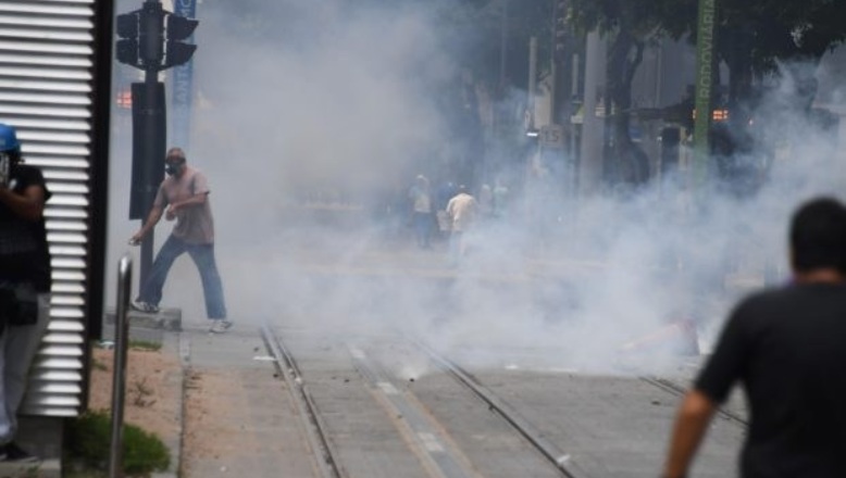 Los enfrentamientos dejaron varios heridos, entre ellos policías, y algunos detenidos, acusados de vandalismo por la destrucción de ventanales de agencias bancarias y el incendio de mobiliario público.